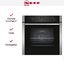 Neff B1ACE0AN0R — электрический духовой шкаф с рабочей камерой объемом 71 л. Модель поддерживает 7 режимов нагрева, среди которых гриллирование и обдув горячим воздухом. Яркая галогенная подсветка улучшает обзор внутреннего пространства прибора. Циркуляция потоков горячего воздуха CircoTherm позволяет готовить блюда на трех уровнях одновременно без смешивания запахов. Утапливаемые поворотные регуляторы панели управления упрощают очистку фасада. Цветной TFT-дисплей размером 3,7″ с сенсорными кнопками управления позволяет без труда задать параметры приготовления пищи. Блокировка от детей защищает от случайного изменения настроек.