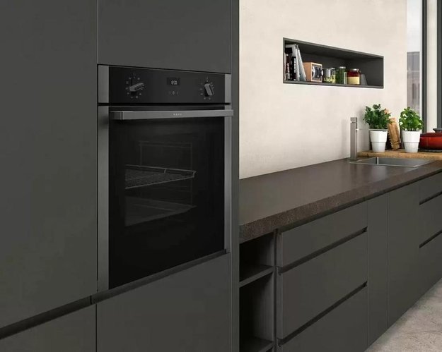 Духовой шкаф Neff B1ACE4AG0 — это элегантное и функциональное решение для любой кухни. Он выполнен в графитовом сером цвете, что придает ему современный и стильный внешний вид. С его помощью вы сможете приготовить любое блюдо, благодаря разнообразию режимов и функций. Эта модель отличается своей независимостью и электрическим способом подключения. Габариты устройства составляют 59.5×59.4×56.7 см, что делает его удобным для встраивания в любую кухонную мебель. Размеры ниши для встраивания составляют 58.5×56×55 см.