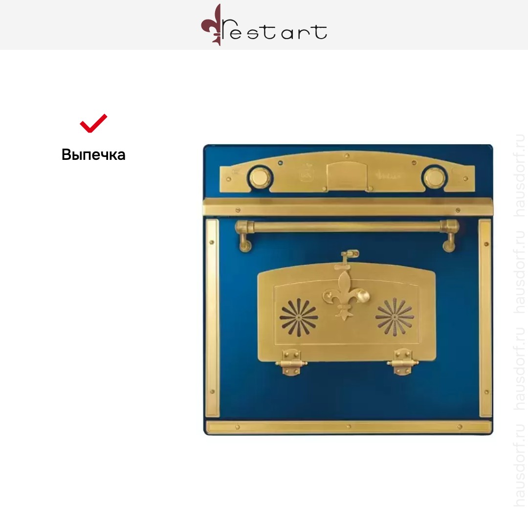 Количество режимов работы в духовом шкафу Рестарт: 9. В число доступных программ входят: конвекция, гриль для создания хрустящей корочки, и другие. Тип гриля в этой модели — электрический.