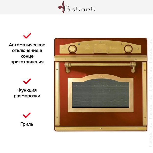 Элегантный ретро-дизайн электрического духового шкафа ELF062 сочетает гармонию форм и содержания. Латунная фурнитура и отделка придают изделию изысканный внешний вид. Внутреннее освещение позволяет следить за процессом приготовления без открытия дверцы духового шкафа, тем самым уменьшая теплопотери.