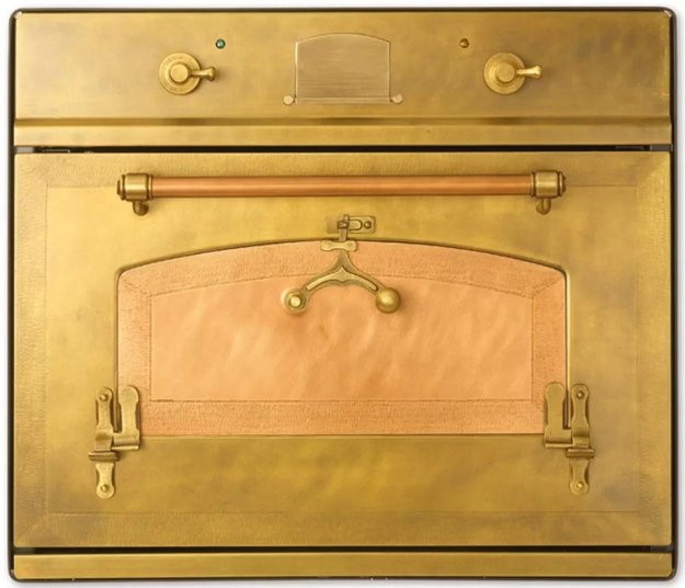 Оригинально и эффектно выглядит фурнитура цвета черненого серебра, которое также называется состаренным. Но особенно привлекательно и стильно смотрится фурнитура духовок в стиле кантри, ампир или классическом: она включает переключатели, декоративные элементы и ручки-рейлинги из латуни, бронзы и различных сплавов золотистого или медного оттенка.