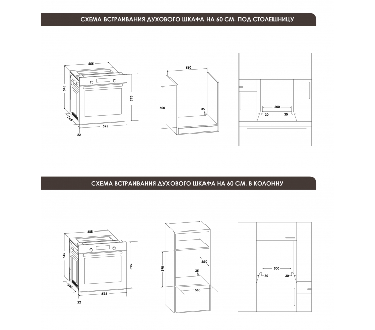 Ко всем моделям прилагаются подробные инструкции по установке, где указаны точные размеры ниши для каждой конкретной духовки.