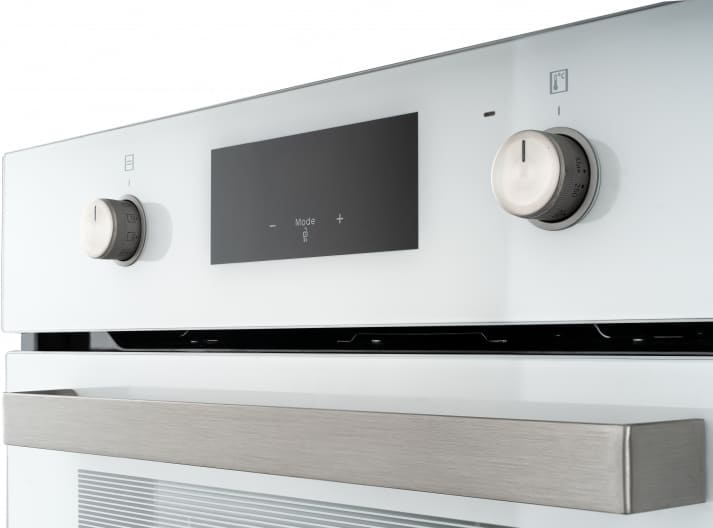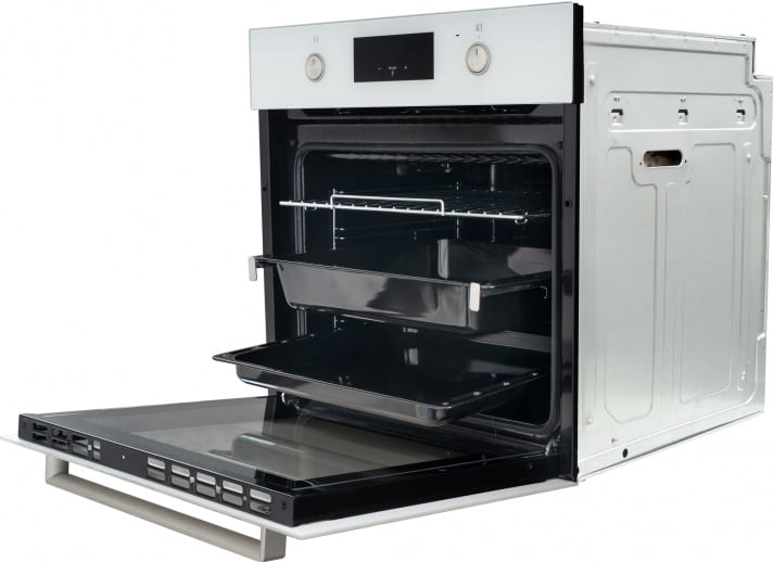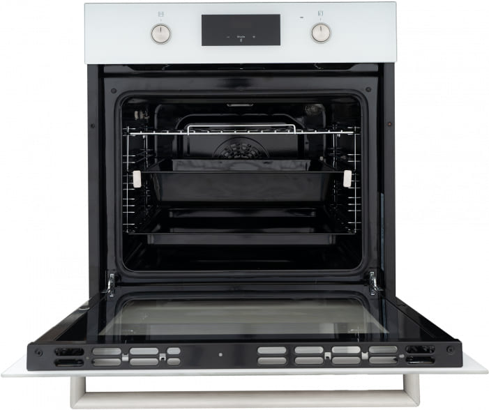 Особенности дизайна и внешней панели управления — также важный пункт при выборе духовки на кухню. В данной модели нужно обратить внимание на цвет — белый,