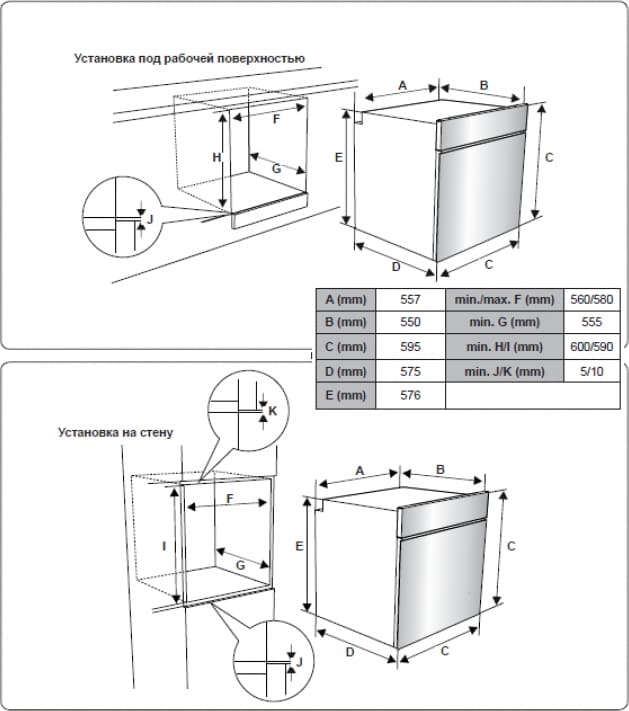 Ко всем моделям прилагаются подробные инструкции по установке, где указаны точные размеры ниши для каждой конкретной духовки.
