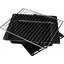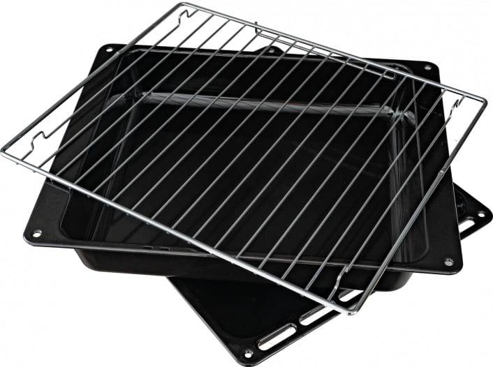 В стандартную комплектацию любого духового шкафа входят один или два противня — эмалированных или с антипригарным покрытием — и решетка. Единственный противень, как правило, имеет низкие бортики и предназначается для приготовления выпечки. Если духовка комплектуется двумя противнями, то второй отличается более высокими бортиками — его можно использовать для запекания мяса, птицы, овощных блюд. На решетке в духовке, не оснащенной грилем, обычно устанавливаются формы для запекания — стальные, керамические или стеклянные. В духовках премиум-класса количество противней может быть увеличено: к стандартному комплекту добавляются противни с перфорацией для мяса, специальные поддоны для сбора выделившегося сока.