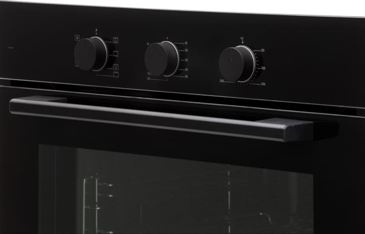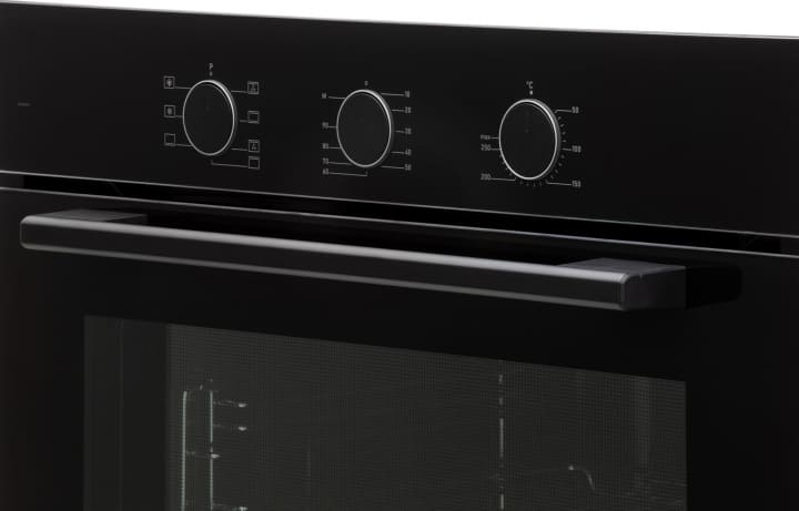 Особенности дизайна и внешней панели управления — также важный пункт при выборе духовки на кухню. В данной модели нужно обратить внимание на цвет — черный, Механическая панель управления позволяет быстро разобраться в настройке программ и не требует чрезмерных усилий.