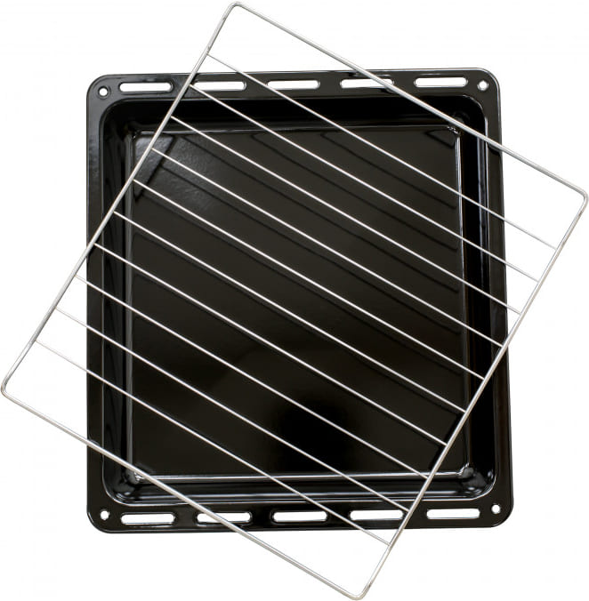 В стандартную комплектацию любого духового шкафа входят один или два противня — эмалированных или с антипригарным покрытием — и решетка. Единственный противень, как правило, имеет низкие бортики и предназначается для приготовления выпечки. Если духовка комплектуется двумя противнями, то второй отличается более высокими бортиками — его можно использовать для запекания мяса, птицы, овощных блюд. На решетке в духовке, не оснащенной грилем, обычно устанавливаются формы для запекания — стальные, керамические или стеклянные. В духовках премиум-класса количество противней может быть увеличено: к стандартному комплекту добавляются противни с перфорацией для мяса, специальные поддоны для сбора выделившегося сока.