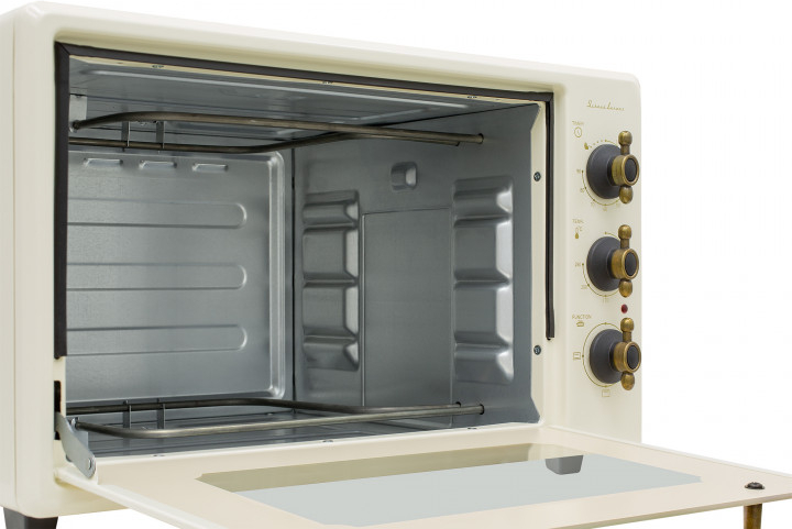 Особенности дизайна и внешней панели управления — также важный пункт при выборе духовки на кухню. В данной модели нужно обратить внимание на цвет — бежевый, Механическая панель управления позволяет быстро разобраться в настройке программ и не требует чрезмерных усилий.