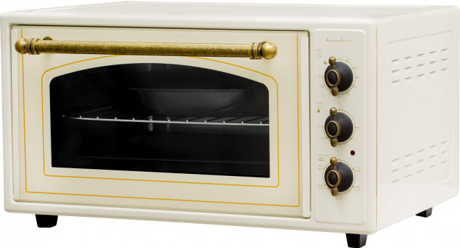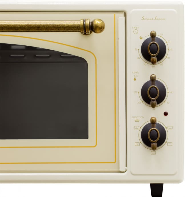 Особенности дизайна и внешней панели управления — также важный пункт при выборе духовки на кухню. В данной модели нужно обратить внимание на цвет — бежевый, Механическая панель управления позволяет быстро разобраться в настройке программ и не требует чрезмерных усилий.