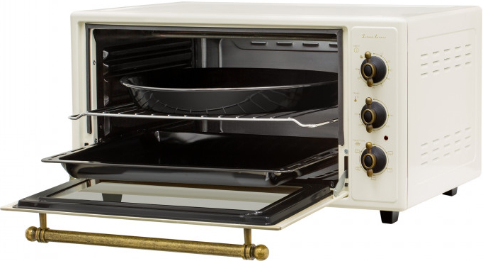 Навесной способ открытия преобладает у настольных моделей: петли в этом случае располагаются слева или справа, а дверца открывается за ручку, расположенную с другой стороны, — так же, как у микроволновки или холодильника. Оригинальна и безопасна выдвижная дверца у электрических духовок — к ней с внутренней стороны прикрепляются все комплектующие, включая противни и направляющие. При выдвижении все они также извлекаются наружу, понижая тем самым риск ожога. Недостаток этого способа — постоянное изменение температуры при каждом открытии дверцы.