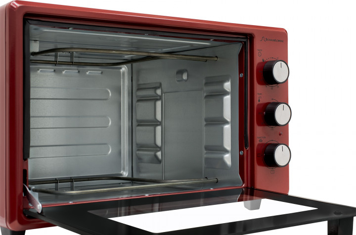 Особенности дизайна и внешней панели управления — также важный пункт при выборе духовки на кухню. В данной модели нужно обратить внимание на цвет — вишня, Механическая панель управления позволяет быстро разобраться в настройке программ и не требует чрезмерных усилий.