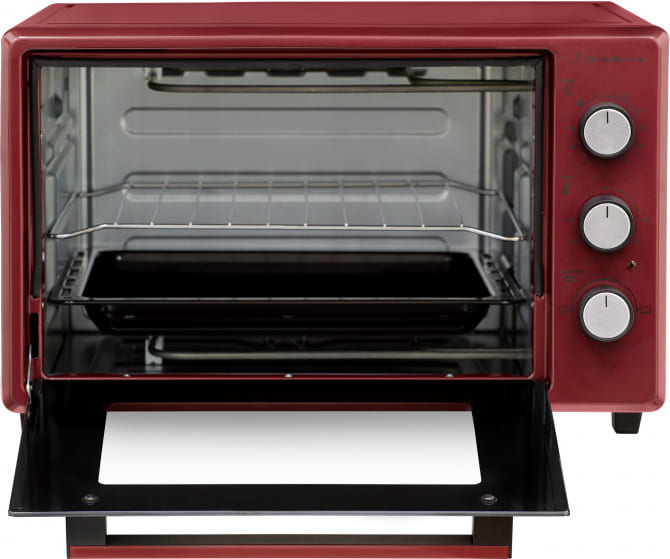 Навесной способ открытия преобладает у настольных моделей: петли в этом случае располагаются слева или справа, а дверца открывается за ручку, расположенную с другой стороны, — так же, как у микроволновки или холодильника. Оригинальна и безопасна выдвижная дверца у электрических духовок — к ней с внутренней стороны прикрепляются все комплектующие, включая противни и направляющие. При выдвижении все они также извлекаются наружу, понижая тем самым риск ожога. Недостаток этого способа — постоянное изменение температуры при каждом открытии дверцы.