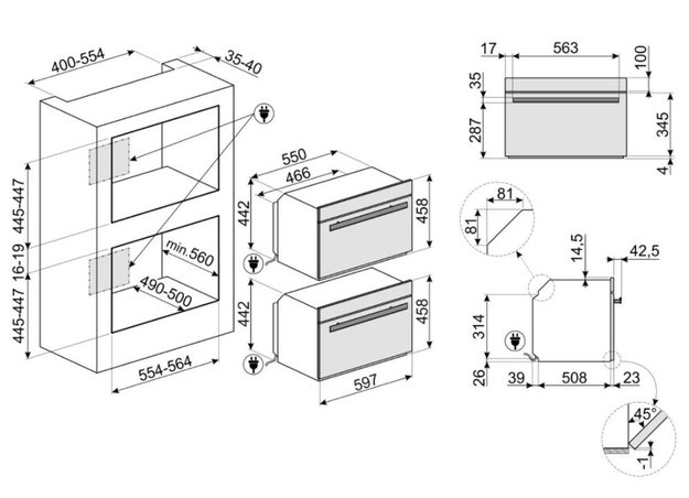 Ко всем моделям прилагаются подробные инструкции по установке, где указаны точные размеры ниши для каждой конкретной духовки.