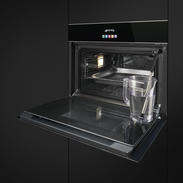 Сочетание горячего воздуха, который образуется в результате работы верхнего и нижнего нагрева и вентилятора, и режим пара, который подается в камеру при помощи специального парогенератора, позволяют готовить практически любые блюда. Горячий воздух при температуре от 140 до 250 градусов способствует получению поджаристой хрустящей корочки, а пар придает особую мягкость начинке блюда, сохраняя при этом все витамины и питательные вещества.