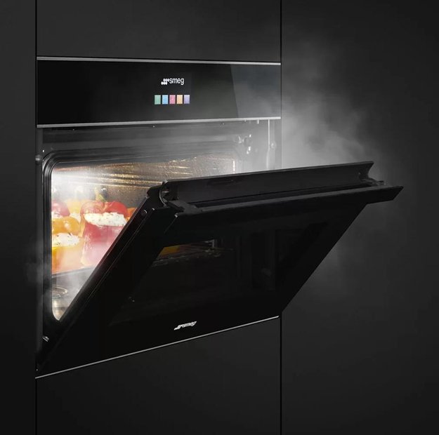 Smeg SF4604VCNX1 — комбинированный духовой шкаф из коллекции Dolce Stil Novo. Модель характеризуется наличием 12 видов нагрева, 3 из которых — с использованием пара. Стеклянный фронт прибора дополнен сенсорной панелью управления с цветным TFT-дисплеем.