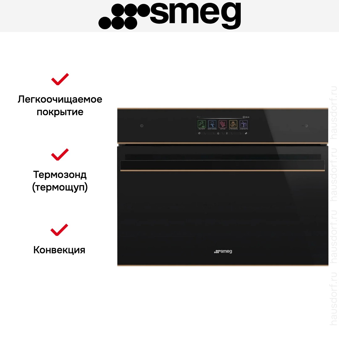 Количество режимов работы в духовом шкафу Смег: 26. В число доступных программ входят: классический нагрев, нижний нагрев, конвекция, приготовление с помощью микроволн, дополнительное использование пара, гриль для создания хрустящей корочки, пицца, и другие. Помимо основных программ воспользуйтесь специальными возможностями этого прибора: режимом Sous-Vide для приготовления нежных, диетических блюд в вакуумной упаковке; вентилятором, совмещенным с грилем; и другими.