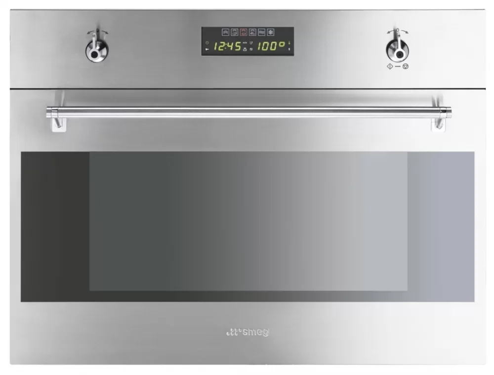 Классическая форма этого встраиваемого электрического духового шкафа удачно впишется в кухонную группу любого стиля. Smeg S45MFX2 цвета нержавеющей стали обладает превосходным набором функций. Особого внимания заслуживает возможность размораживания продуктов, откидной, большой и малый гриль. Электронная панель управления понравится всем.