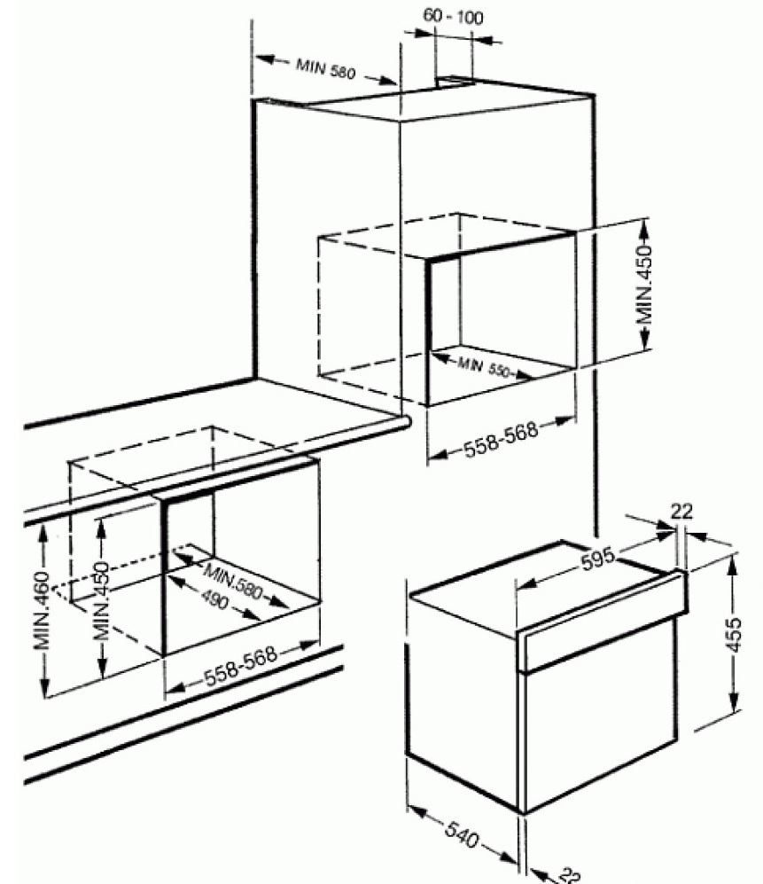 Ко всем моделям прилагаются подробные инструкции по установке, где указаны точные размеры ниши для каждой конкретной духовки.