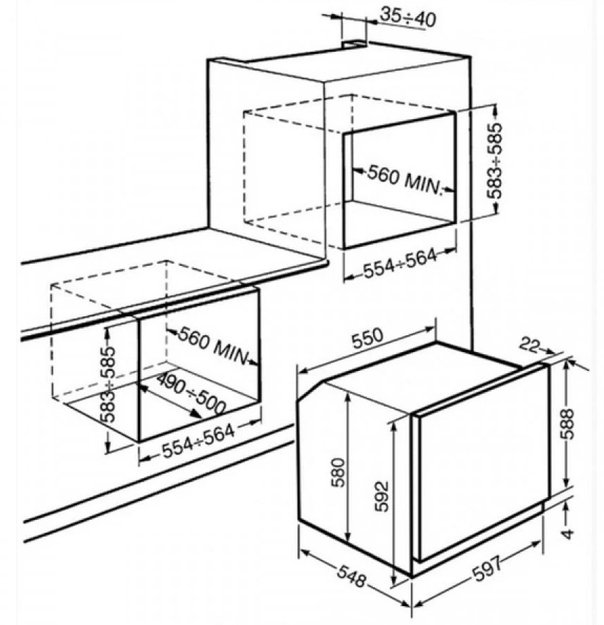 Ко всем моделям прилагаются подробные инструкции по установке, где указаны точные размеры ниши для каждой конкретной духовки.