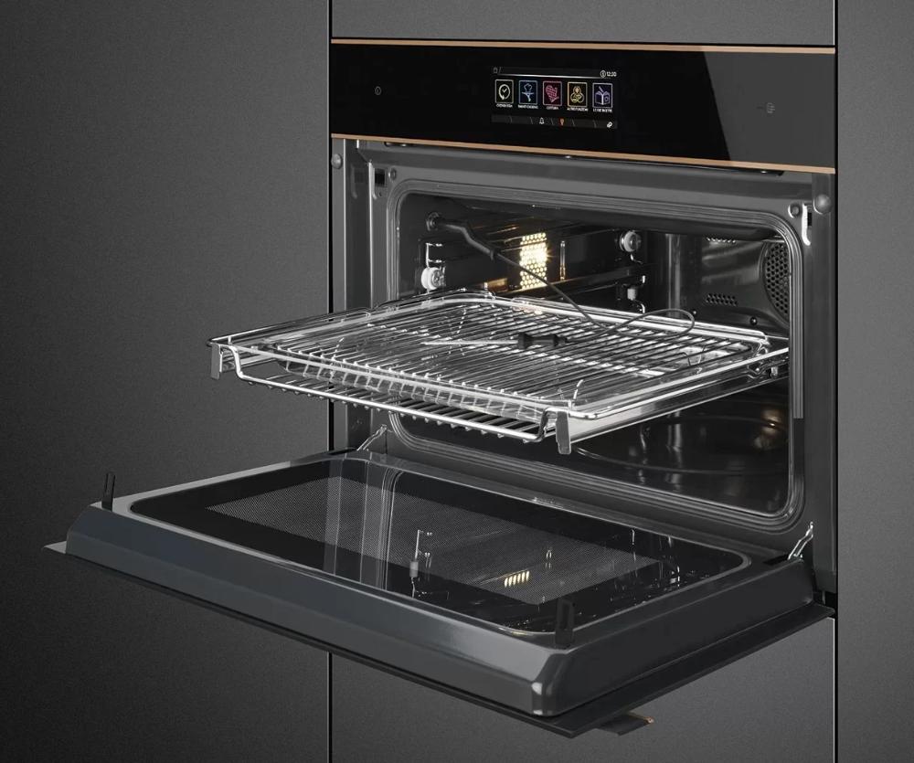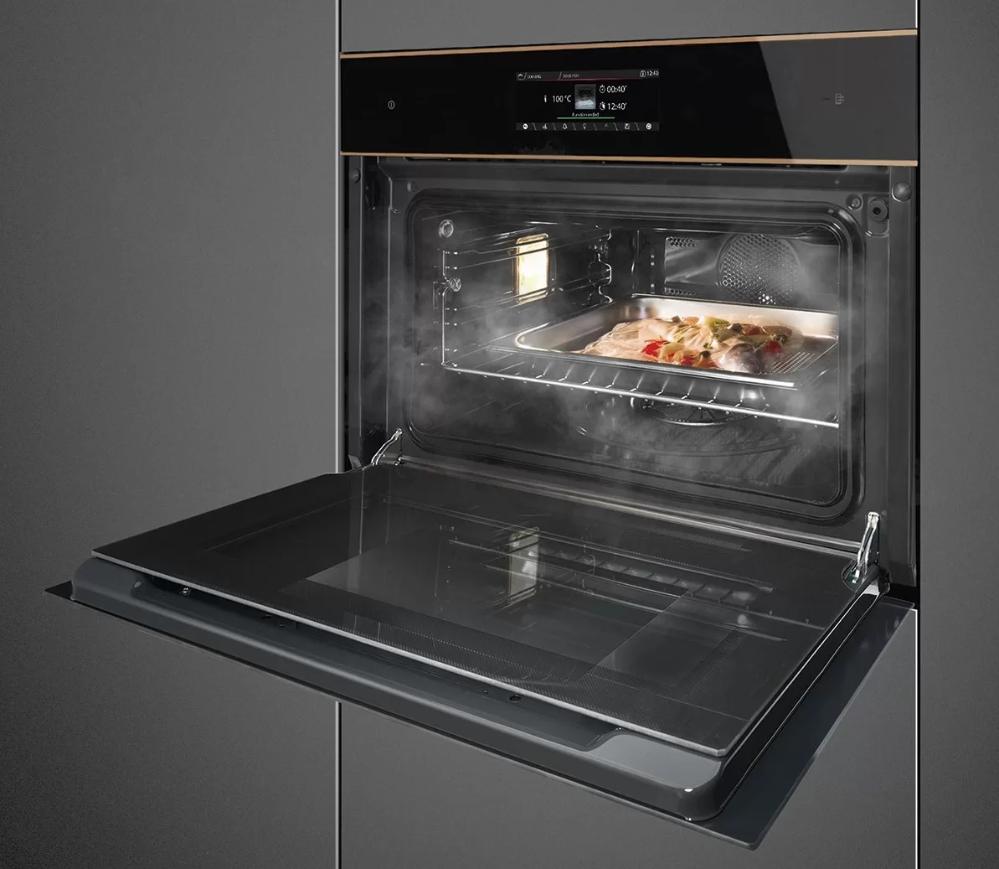 Что касается видов нагрева, то производители предлагают свои варианты. Например, в моделях Smeg ECO-режим в начале приготовления предусматривает одновременное включение верхнего и нижнего жара и конвекции: камера нагревается максимально быстро и равномерно. Это позволяет готовить в ней несколько блюд сразу на всех уровнях, причем на качестве готовки это никак не отражается.