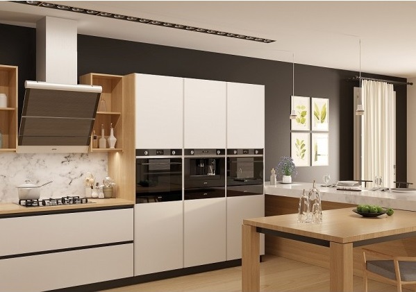 Популярными остаются и оттенки белого — например, цвет слоновой кости. Бежевый или кремовый фасад — находка для кухни в деревенском или ретро-стиле. Он также практичен и прост в уходе; нередко бежевые духовки дополняются фурнитурой из латуни или бронзы.