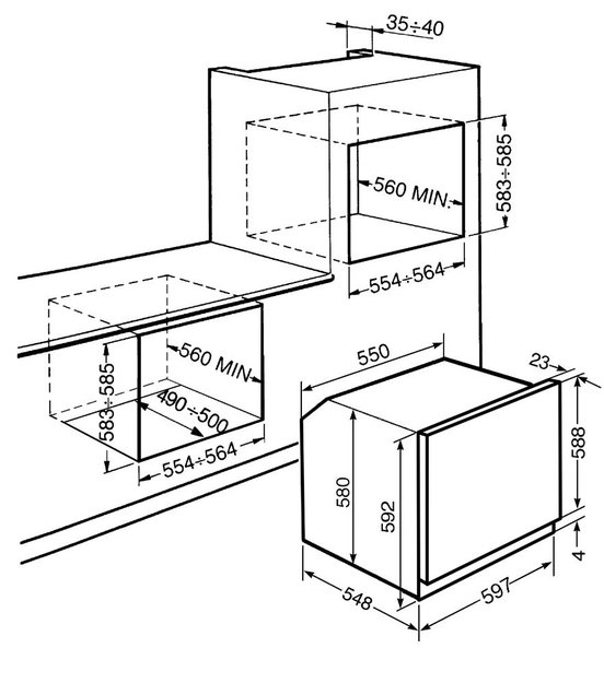 Ко всем моделям прилагаются подробные инструкции по установке, где указаны точные размеры ниши для каждой конкретной духовки.