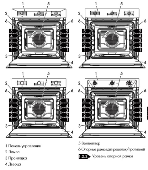 Уровни приготовления — это держатели для противней и решеток, расположенные по бокам камеры. В стандартном шкафу их обычно 4-5, в некоторых моделях доходит до 7 и больше. Для многих блюд имеет значение, на каком уровне их готовить, так как распределение жара происходит по-разному сверху, снизу или посередине. Для выдвижения и переставления противней на этих уровнях есть разного вида направляющие.
