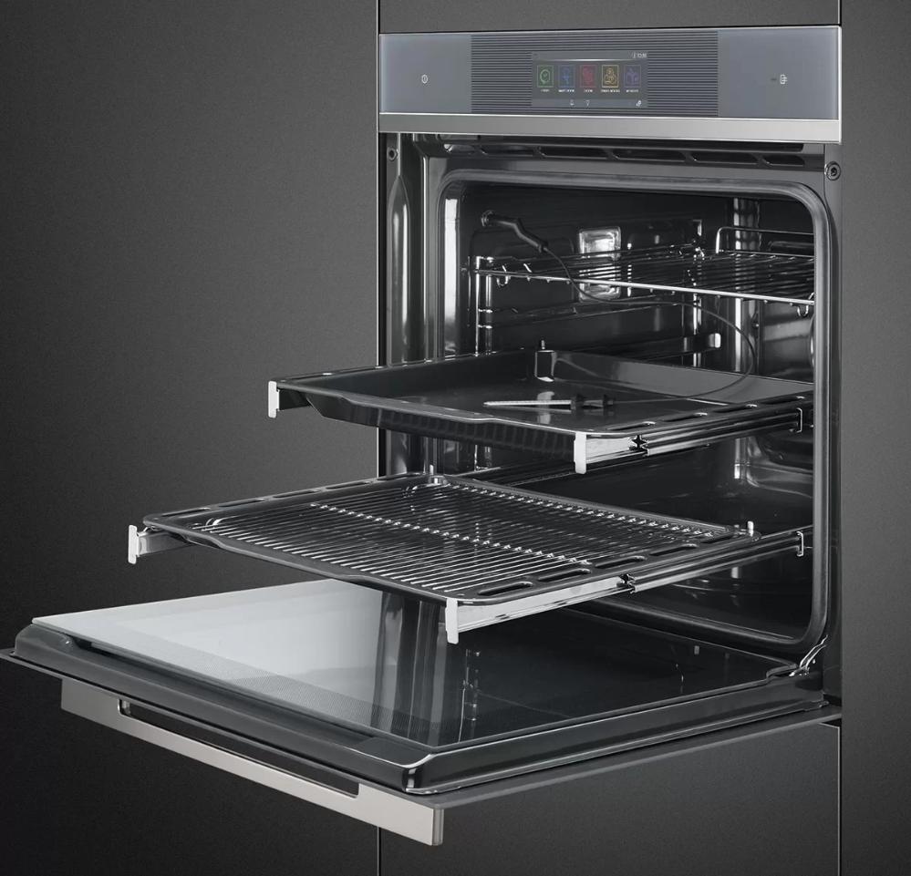 Что касается видов нагрева, то производители предлагают свои варианты. Например, в моделях Smeg ECO-режим в начале приготовления предусматривает одновременное включение верхнего и нижнего жара и конвекции: камера нагревается максимально быстро и равномерно. Это позволяет готовить в ней несколько блюд сразу на всех уровнях, причем на качестве готовки это никак не отражается.