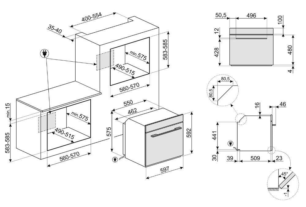 Ко всем моделям прилагаются подробные инструкции по установке, где указаны точные размеры ниши для каждой конкретной духовки.
