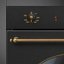 Оригинально и эффектно выглядит фурнитура цвета черненого серебра, которое также называется состаренным. Но особенно привлекательно и стильно смотрится фурнитура духовок в стиле кантри, ампир или классическом: она включает переключатели, декоративные элементы и ручки-рейлинги из латуни, бронзы и различных сплавов золотистого или медного оттенка.