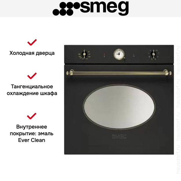 Духовой шкаф Smeg SFP805AO цвета антрацит с латунной фурнитурой — сама элегантность. В модели сочетаются простота и благородство, классические традиции и современные технологии. Безупречное исполнение, исчерпывающий набор функций, продуманная система безопасности делают модель актуальной.