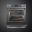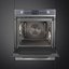 Серебристый духовой шкаф Smeg с фирменным фронтальным стеклом Stopsol стильно смотрится в любом современном интерьере. Он управляется поворотными переключателями и сенсорными кнопками на широком дисплее — это позволяет быстро запомнить расположение разных функций и активировать их без лишнего поиска.
