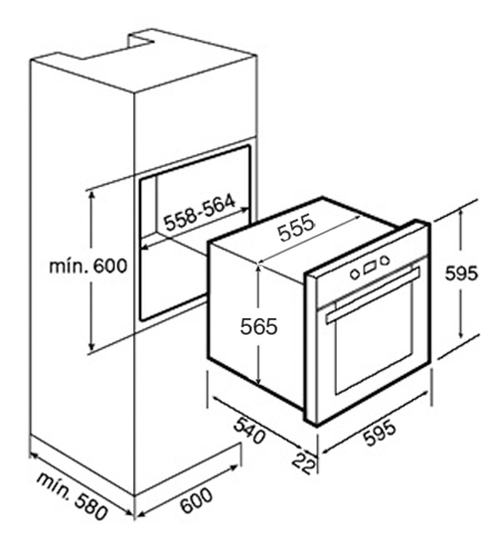 Глубина духовых шкафов, в отличие от их высоты и ширины, не отличается разнообразием. Стандартное значение составляет 54-55 см, что позволяет встраивать устройство в обычную кухонную тумбу или колонну глубиной 60 см так, чтобы оставалось достаточно места до задней стенки мебели или стены кухни для обеспечения нормальной вентиляции. В инструкциях по установке указывается, что это расстояние должно составить не менее 4–5 см. Объем такой духовки может быть равен от 50 до 70 литров.