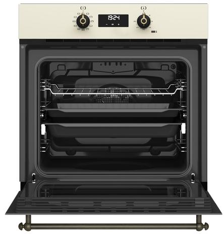 Особенности дизайна и внешней панели управления — также важный пункт при выборе духовки на кухню. В данной модели нужно обратить внимание на цвет — ваниль,