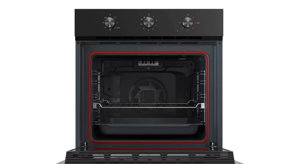 Особенности дизайна и внешней панели управления — также важный пункт при выборе духовки на кухню. В данной модели нужно обратить внимание на цвет — черный,