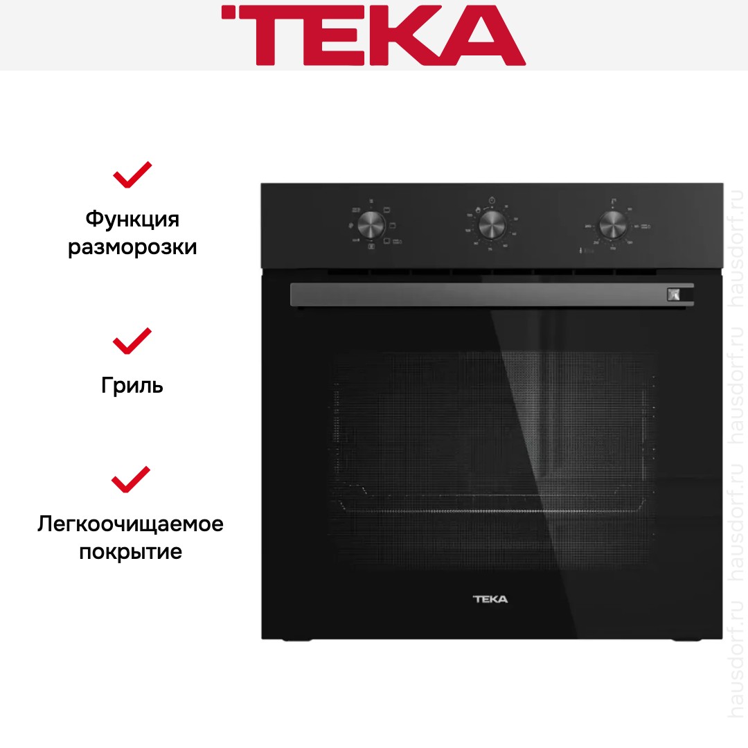 Количество режимов работы в духовом шкафу Тека: 6. В число доступных программ входят: классический нагрев, нижний нагрев, гриль для создания хрустящей корочки, и другие. Помимо основных программ воспользуйтесь специальными возможностями этого прибора: размораживанием продуктов, чтобы сократить время на подготовку; быстрым разогревом для ускорения работы; и другими. Тип гриля в этой модели — электрический.