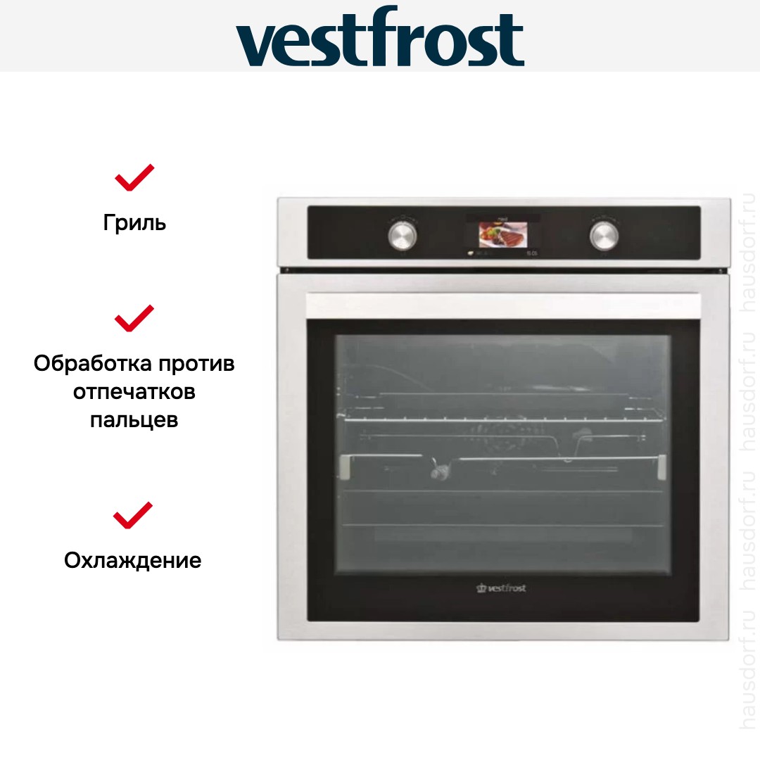 Vestfrost VFSM78OHI — независимый духовой шкаф с более чем ста пятьюдесятью специальными рецептами. В режиме автоматического приготовления достаточно выбрать только название блюда, а остальные настройки, например, время и температуру приготовления, модель устанавливает автоматически. Функция VAP Clean позволяет размягчить паром сухие остатки пищи внутри духовки.