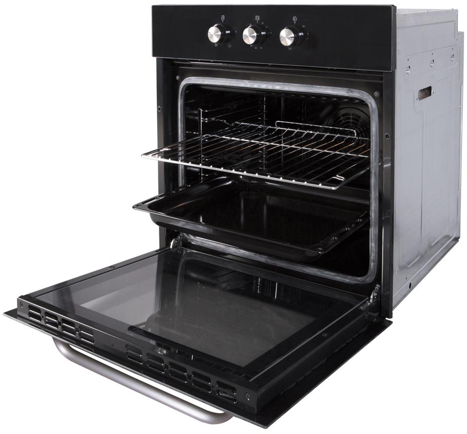 Объем рабочей камеры определяется прежде всего габаритами прибора. Глубина духовок обычно составляет 55–59 см, высота чаще всего принимает два значения — 45 см или 60 см, так что в большей степени объем зависит от ширины. В настоящее время производители выпускают несколько вариантов духовок по ширине и высоте: стандартные шириной и высотой 60 см, компактные шириной 60 см и высотой 45 см, узкие — 45×60 см, широкие — 90×60 см и широкие компактные — 90×45 см. Ряд фирм предлагает также духовки нестандартных размеров.