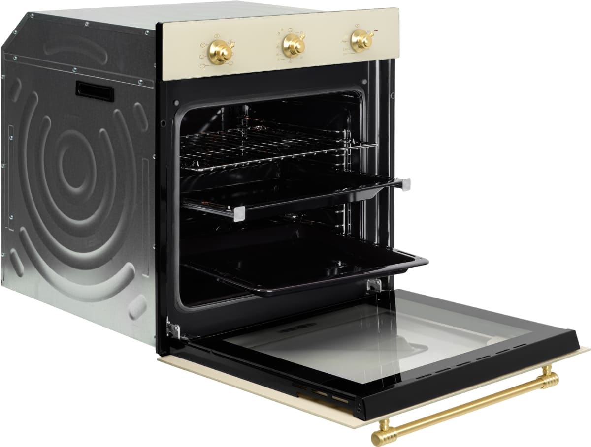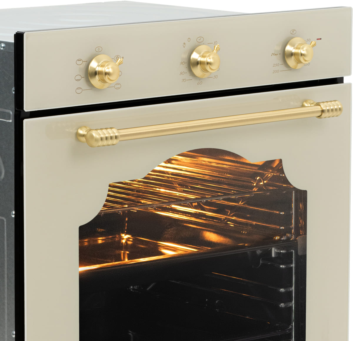 Особенности дизайна и внешней панели управления — также важный пункт при выборе духовки на кухню. В данной модели нужно обратить внимание на цвет — бежевый, охлаждение двери, чтобы поверхность и мебель вокруг не нагревались. Механическая панель управления позволяет быстро разобраться в настройке программ и не требует чрезмерных усилий.
