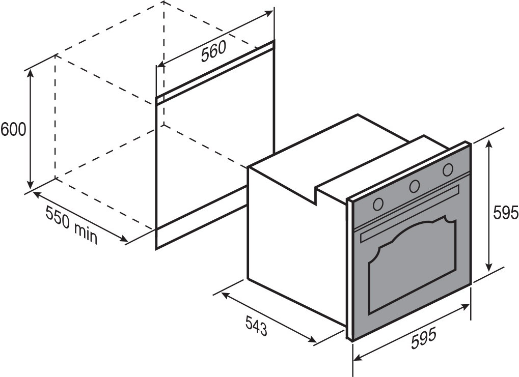 Размеры ниши для встраивания духового шкафа определяются, исходя из габаритов самого устройства. Стандартные модели обычно без труда устанавливаются в нишу шириной около 560 мм, высотой около 595 мм и глубиной примерно 550 мм. Следует помнить, что фасад устройства должен иметь большие размеры, чем величина ниши.