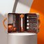 Модель представлена в удобном кейсе вместе с набором аксессуаров. Цилиндрические насадки разного диаметра позволяют создать идеальные локоны и прикорневой объем, концентратор помогает высушить, завить или выпрямить пряди. Комплект дополняют расческа, органайзер и диффузор для вьющихся волос.