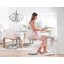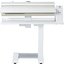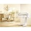 Полупрофессиональная модель с автоматической системой защиты пальцев создает все условия для эффективного глажения больших объемов белья — постельного, столового, детских вещей, спортивной и повседневной одежды. Гладильный вал шириной 83 см со свободным краем рассчитан на работу с изделиями большого размера. Запуск производится при помощи ножной педали, которую можно переместить по выбору пользователя. Это не только освобождает обе руки, но и позволяет сидеть при выполнении работы. Лучшее разглаживание складок и заломов достигается за счет планки, которая под давлением прижимает белье к валу, и специального стола для разглаженных вещей. Установка температуры глажения производится при помощи поворотного регулятора, рационально расположенного с правой стороны. Три нагревательных элемента позволяют равномерно нагревать поверхность вала. Функция пара применяется при разглаживании тонких тканей. В двух резервуарах помещается достаточное количество воды, которой хватает примерно на 40 минут глажения. О необходимости наполнить резервуары сообщит светодиодный сигнал. В сложенном виде устройство занимает не более 0,2 м2 и может поместиться в шкафу.