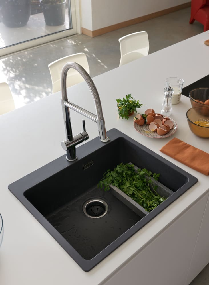 Кнопка соединена с двигателем специальным шлангом с воздухом — при нажатии на нее мотор запускается. Такая конструкция делает прибор удобнее и безопаснее, так как кнопку можно установить прямо на мойке и включать измельчитель даже мокрыми руками.