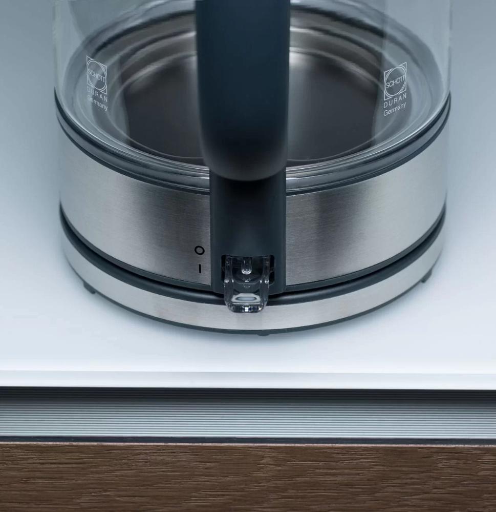 Термостойкое стекло придает модели больше эстетики, красоты. Прибор в таком оформлении способен подчеркнуть любой современный дизайн. Помимо этого, обеспечивается безопасность в использовании. Материал устойчив к высоким температурам и ее перепадам. Он не трескается даже при нагреве 100 градусов по Цельсию. Термостойкое стекло очень прочное, его невозможно резать и даже сверлить. Если чайник случайно упадет, то никаких механических повреждений не получит и не разобьется.