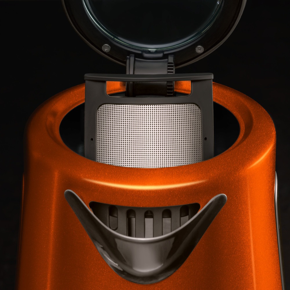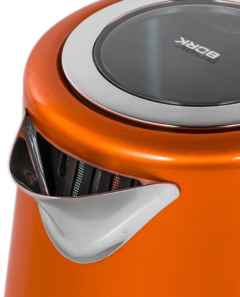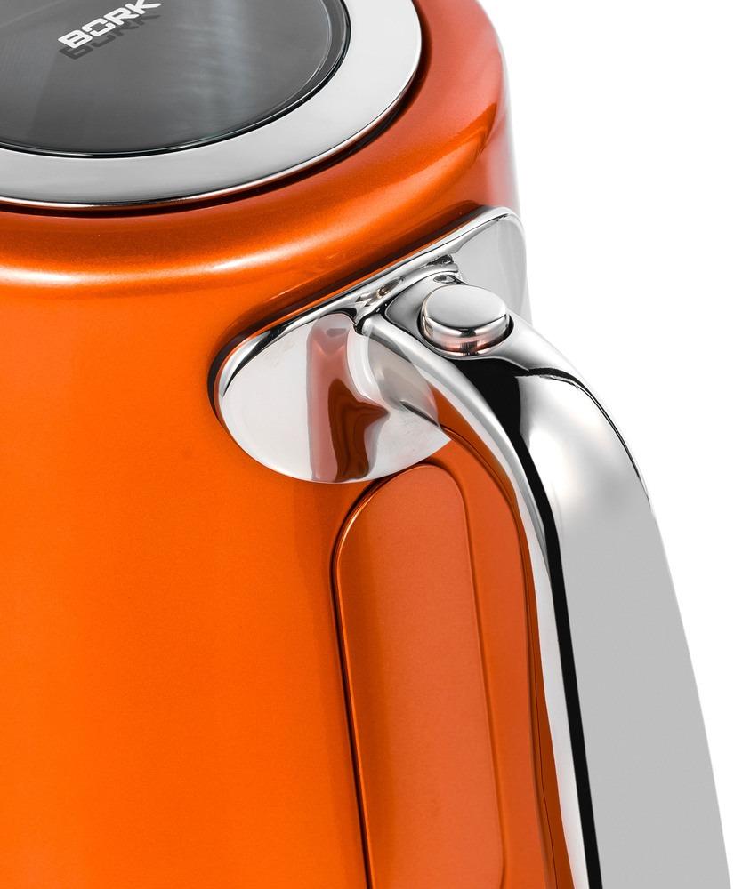 Чайник Bork выполнен из прочной нержавеющей стали, яркий оранжевый цвет освежает интерьер. На поворотной базе расположены кнопки управления — своя под каждый температурный режим. Помимо температурных подсказок они снабжены пояснениями, какой режим для заваривания какого сорта чая подходит. Функция поддержания тепла позволяет сохранить необходимый нагрев до 20 минут после выключения.