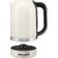 Чайник оборудован системой автоматического нагрева: он быстро доводит воду до кипения и сам отключается после завершения цикла. Функция регулировки температуры позволяет бесшумно нагреть воду до нужного градуса. Съемная поворотная база обеспечивает полную свободу перемещения — устанавливайте чайник там, где вам удобно.