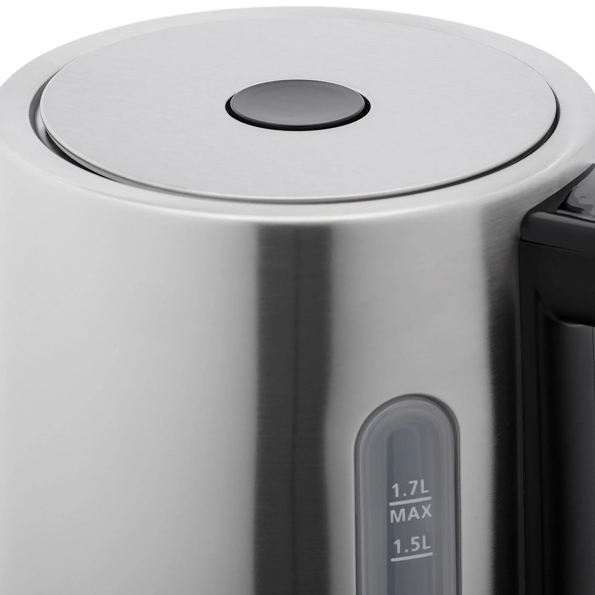 Материал корпуса: нержавеющая сталь. Материал подставки: пластик. Объем (л): 1.7. Цвет: нержавеющая сталь. Мощность (Вт): 2200. Управление: электронное.