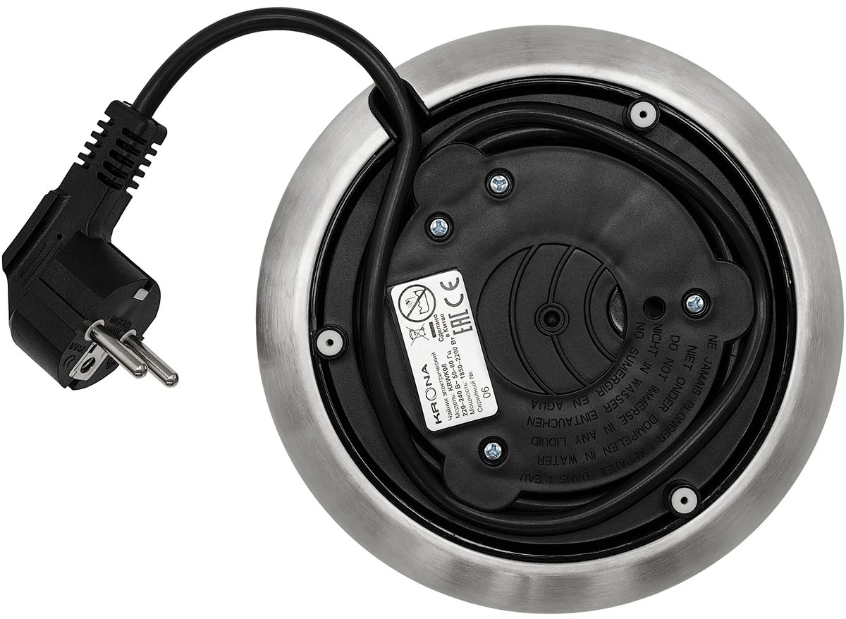 Материал корпуса: нержавеющая сталь. Материал подставки: пластик. Объем (л): 1.7. Цвет: нержавеющая сталь. Мощность (Вт): 2200. Управление: механическое.