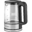 Корпус объединяет прочные металлические вставки и лёгкий пластик, что даёт баланс между долговечностью и малым весом. Стеклянная колба устойчиво переносит нагрев и сохраняет чистоту вкуса напитков, а прозрачность позволяет контролировать процесс кипения без открытия крышки. Объём 1,7 литра удобно подходит для семьи или офисной кухни: достаточно для нескольких чашек чая и не занимает много места на столешнице.