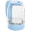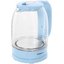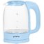 Материал корпуса: пластик/стекло. Материал подставки: пластик. Объем (л): 1.7. Цвет: голубой. Мощность (Вт): 2200. Управление: механическое.